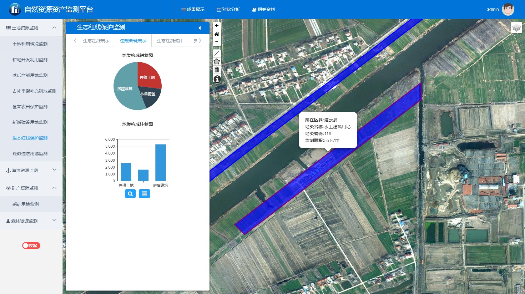 依托我院空间数据获取、管理、处理与分析能力,基于全省多时相基础测绘、遥感影像、地理国情等地理信息资源,集成国土、规划、海洋、环保、交通等多个行业的不同时期专题数据,经数据抽取与转换,形成详实、鲜活、独立、客观的自然资源资产时空大数据。在此基础上,自主研发了一套业务化整合-分析-展示系统,借助大数据审计,实现对土地、海洋、矿产、森林等自然资源资产的审计与定期监测。
