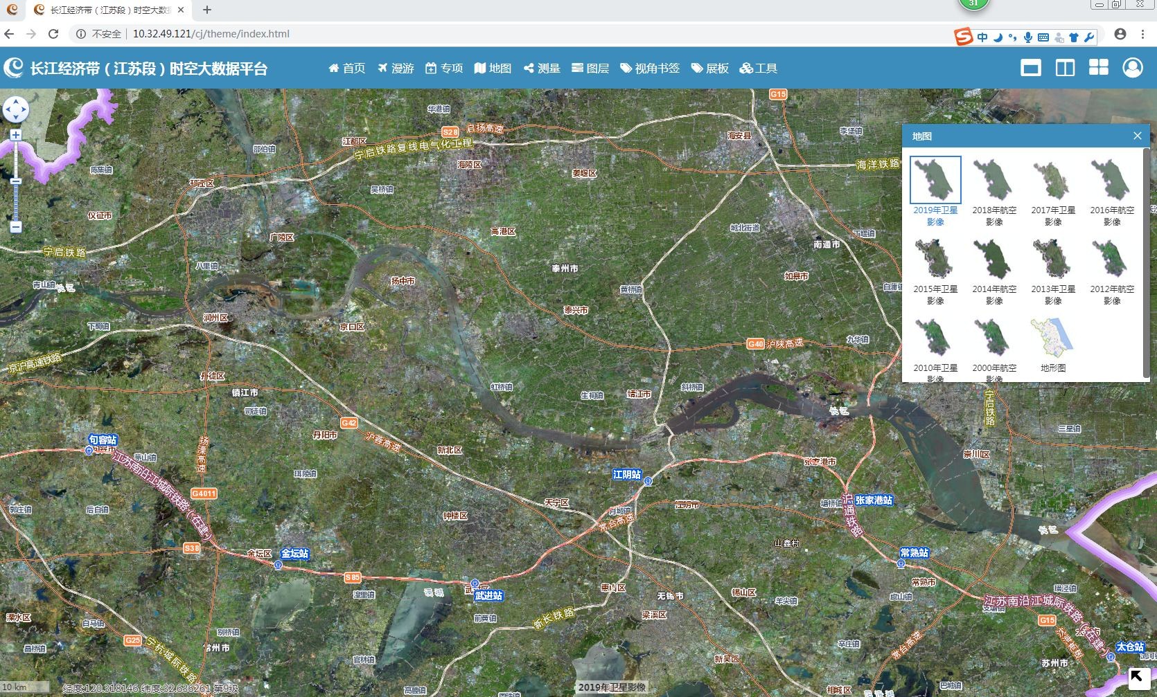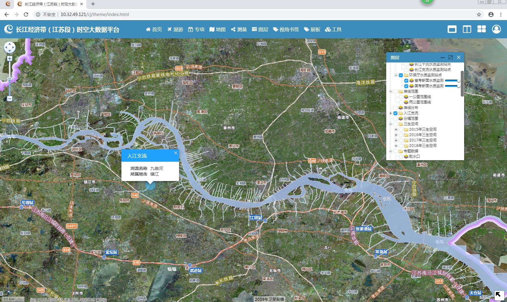 长江经济带(江苏段)时空大数据平台(以下简称“平台”),充分利用大数据理念,构建长江(江苏段)近二十年一张空间底图,并结合环保、交通、水利等部门权威数据,可客观掌握长江江苏段区域的历史和现状情况,为长江经济带(江苏段)布局、管控、保护和生态环境修复提供科学决策支持。平台特点主要如下: