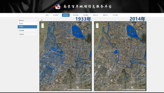 4、对南京百年水系时空数据模型、时空框架数据库和时空数据社会服务构建等进行了研究和分析,形成了一整套理论和方法,并开发了南京百年地理信息服务平台。