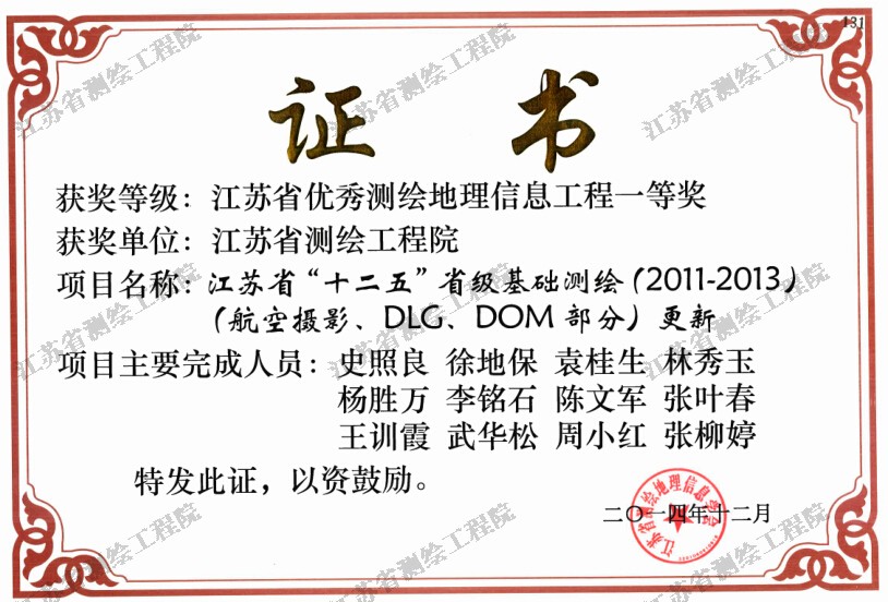 江苏省“十二五”省级基础测绘(2011-2013)(航空摄影、DLG、DOM部分)更新